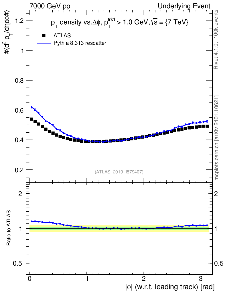 Lines: data, pythia8 8.313 rescatter |