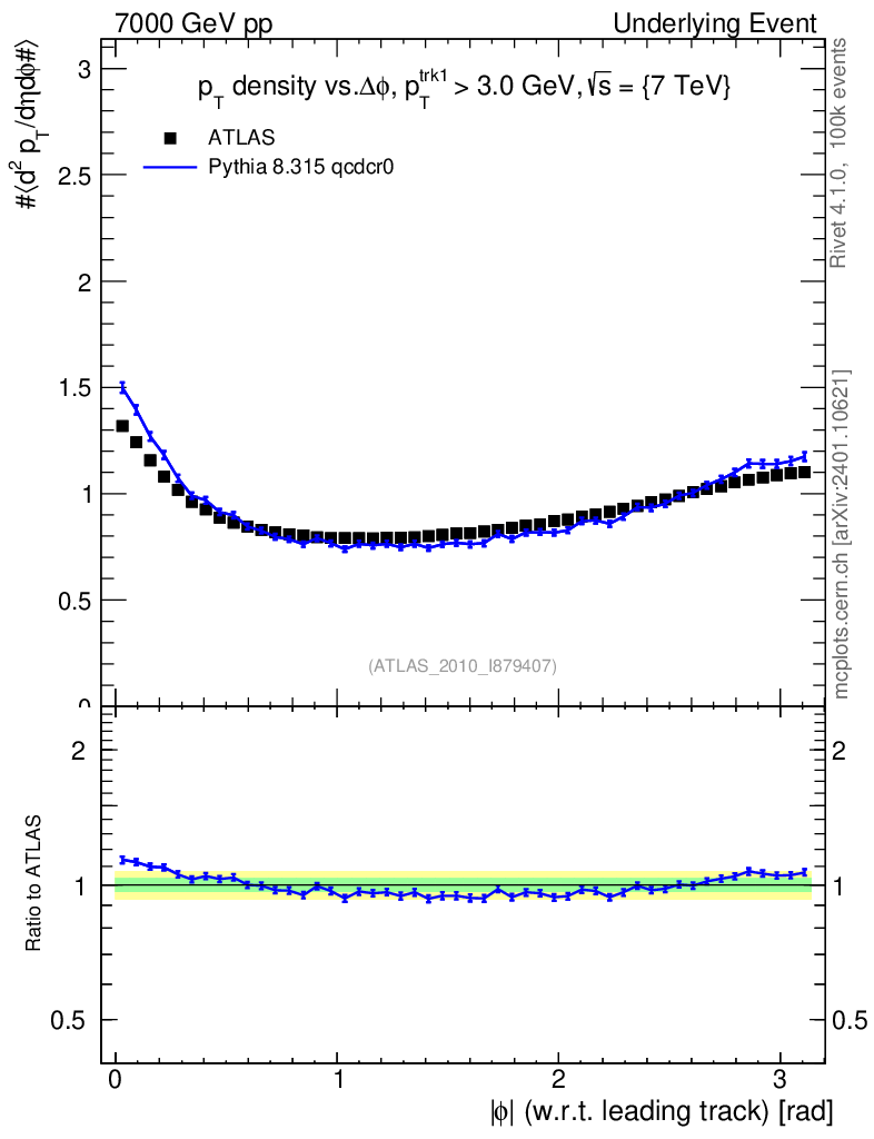Lines: data, pythia8 8.315 qcdcr0 |