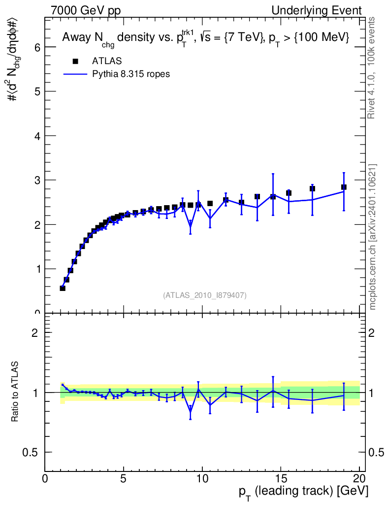 Lines: data, pythia8 8.315 ropes |
