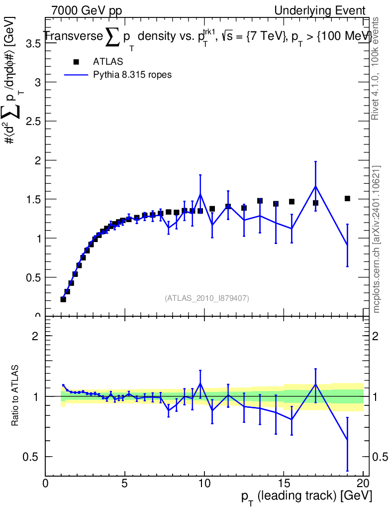 Lines: data, pythia8 8.315 ropes |