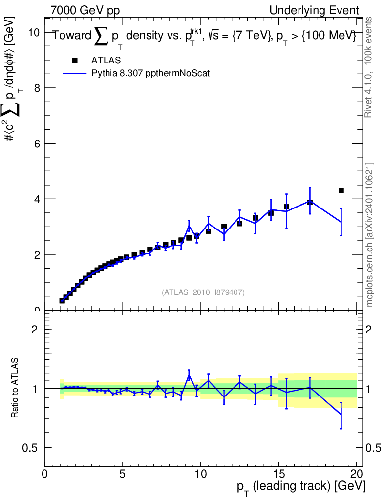 Lines: data, pythia8 8.307 ppthermNoScat |