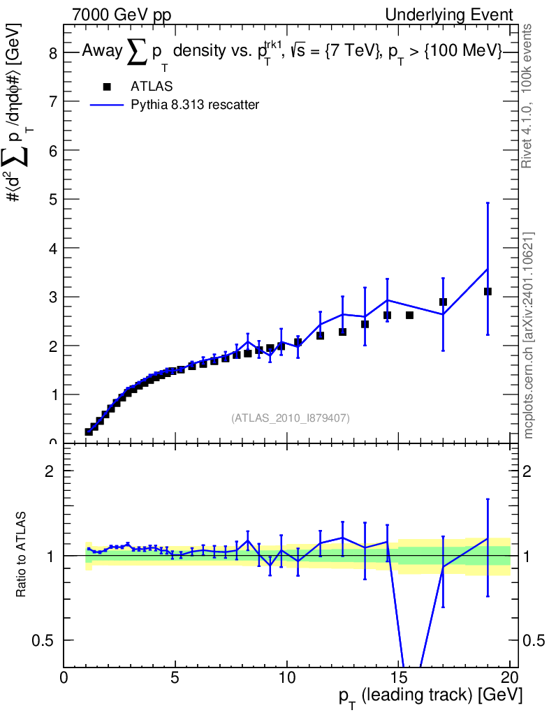 Lines: data, pythia8 8.313 rescatter |