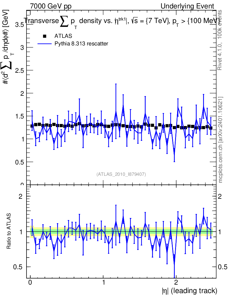 Lines: data, pythia8 8.313 rescatter |