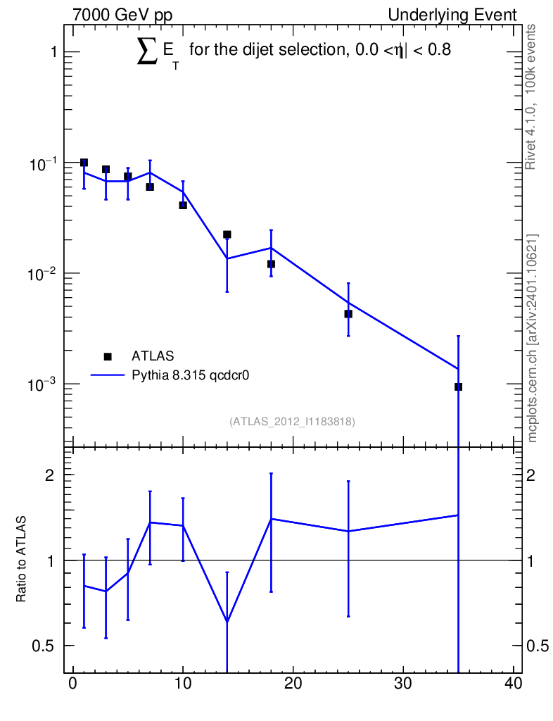 Lines: data, pythia8 8.315 qcdcr0 |