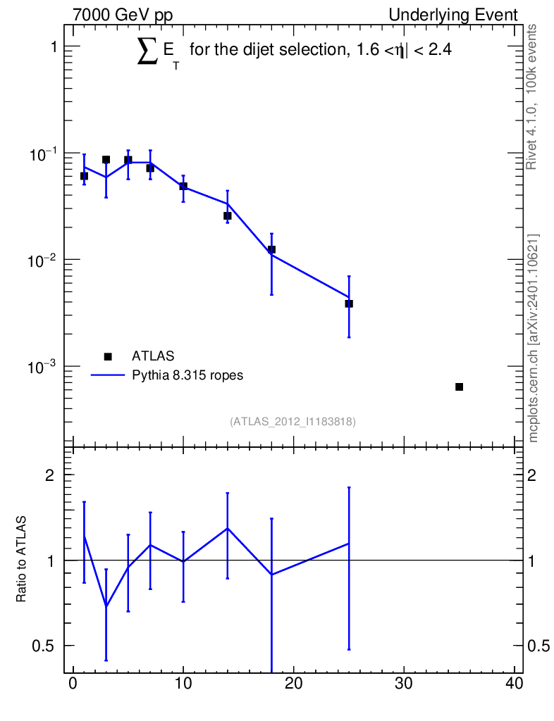 Lines: data, pythia8 8.315 ropes |