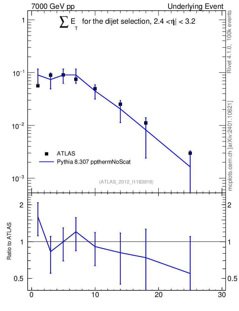 Lines: data, pythia8 8.307 ppthermNoScat |