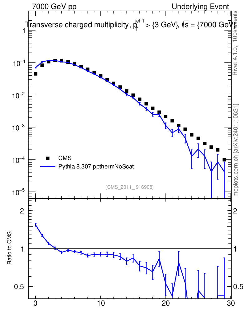 Lines: data, pythia8 8.307 ppthermNoScat |