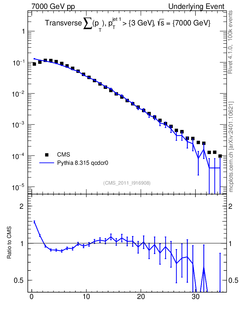 Lines: data, pythia8 8.315 qcdcr0 |