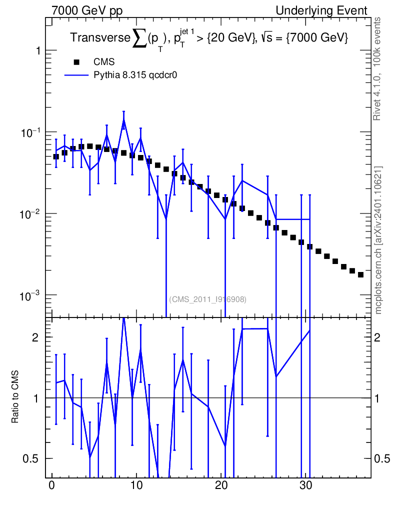 Lines: data, pythia8 8.315 qcdcr0 |