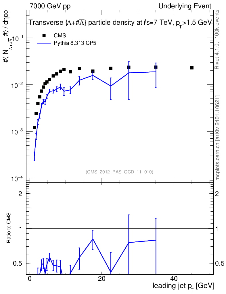 Lines: data, pythia8 8.313 CP5 | compare with other tunes