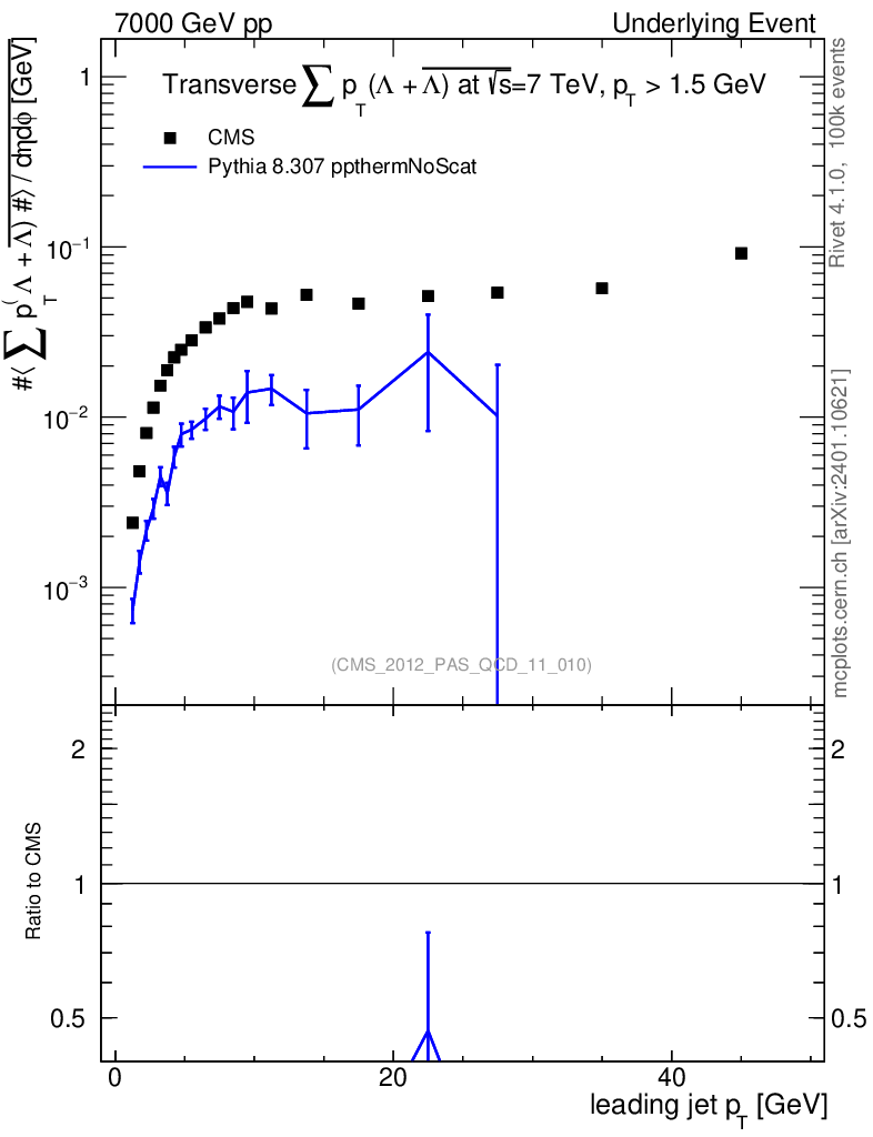 Lines: data, pythia8 8.307 ppthermNoScat |