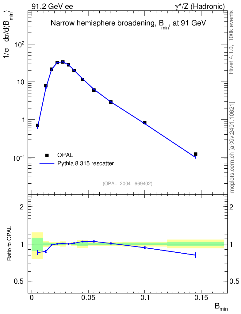 Lines: data, pythia8 8.315 rescatter |
