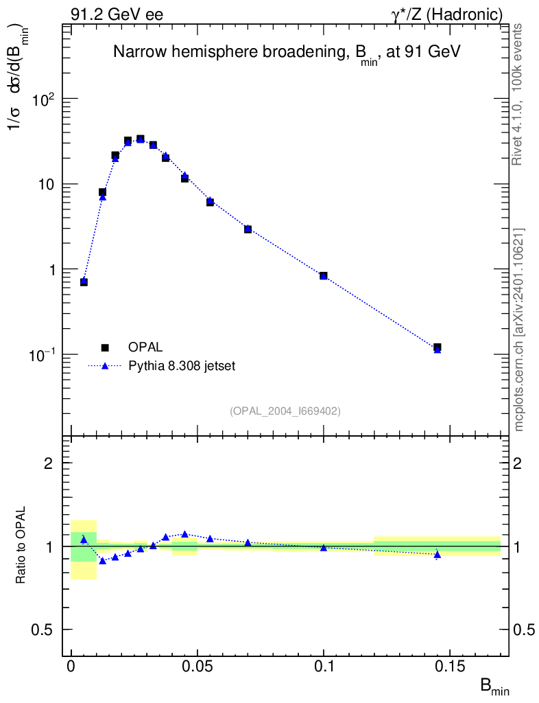 Lines: data, pythia8 8.308 jetset |