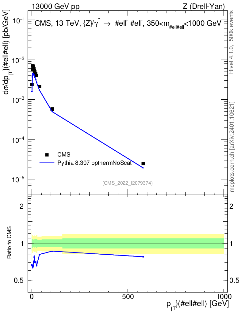 Lines: data, pythia8 8.307 ppthermNoScat |