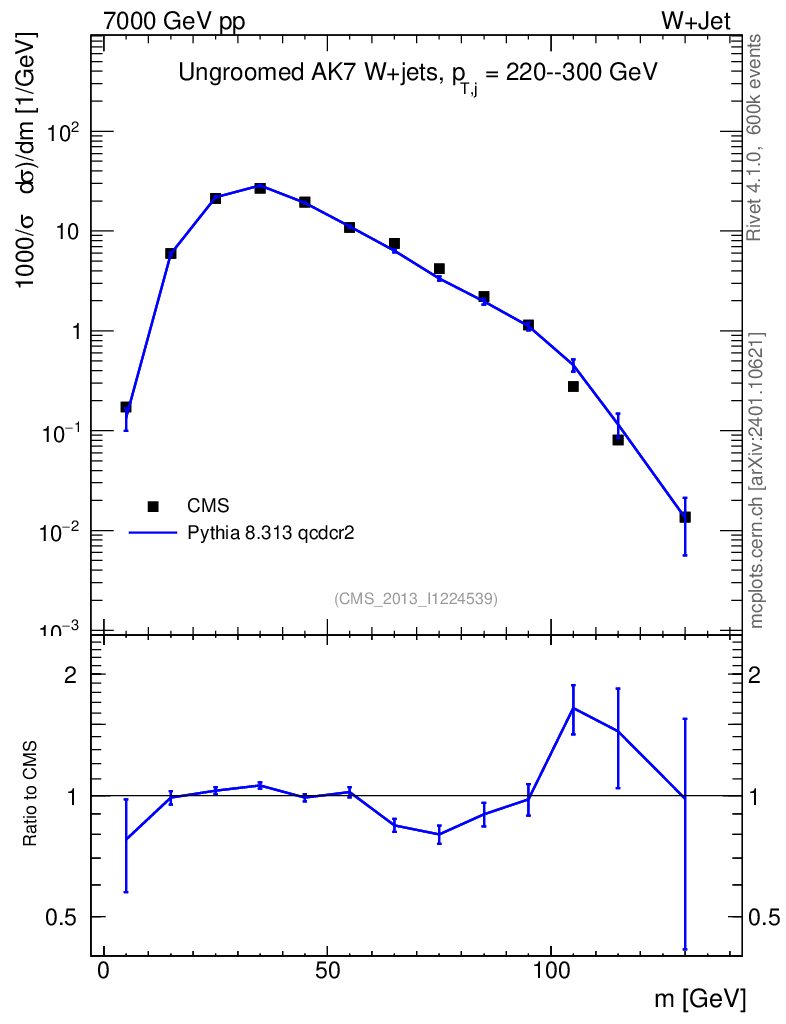 Lines: data, pythia8 8.313 qcdcr2 |
