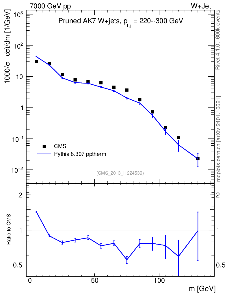 Lines: data, pythia8 8.307 pptherm |