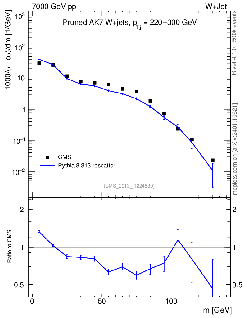 Lines: data, pythia8 8.313 rescatter |