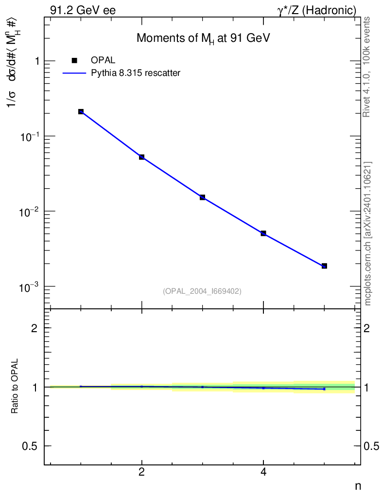 Lines: data, pythia8 8.315 rescatter |