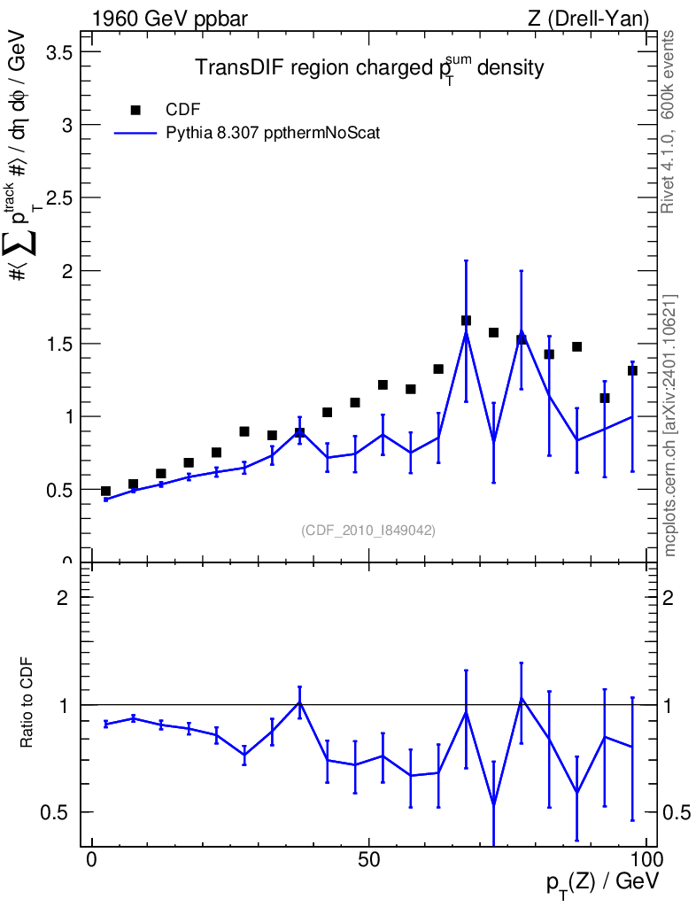 Lines: data, pythia8 8.307 ppthermNoScat |