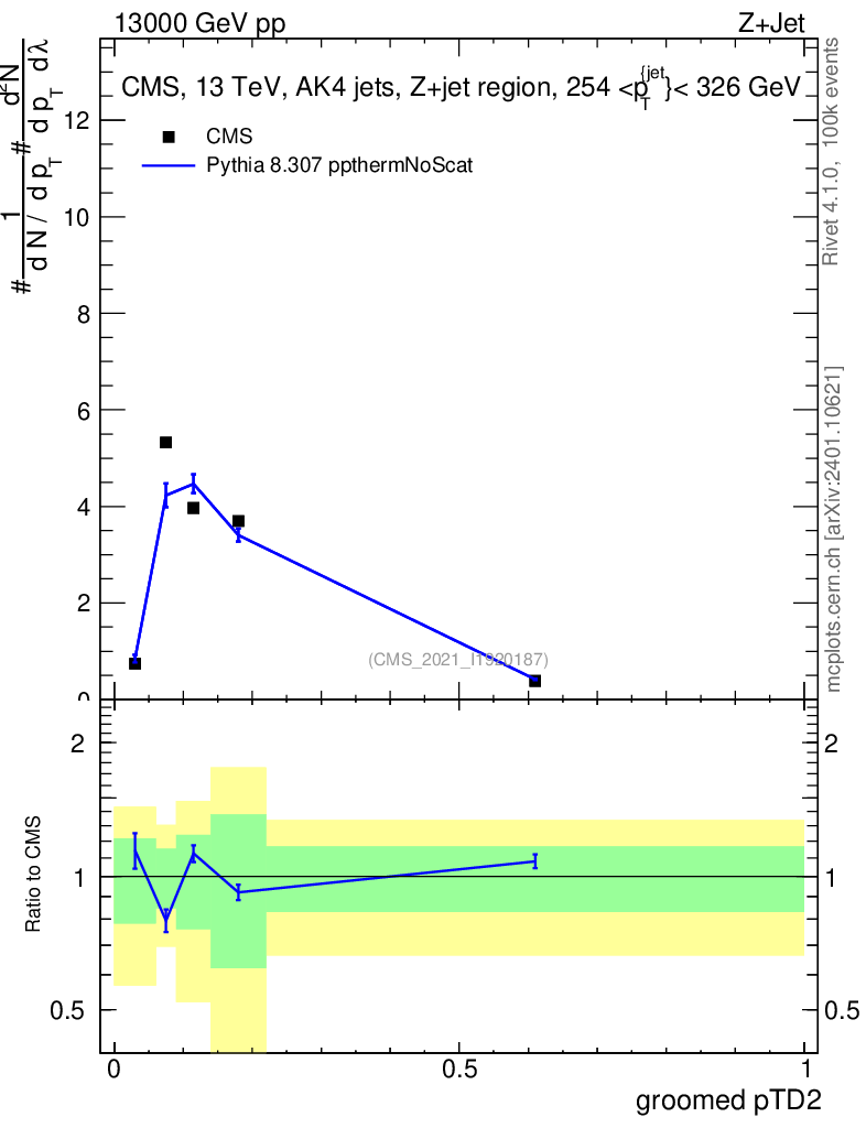 Lines: data, pythia8 8.307 ppthermNoScat |