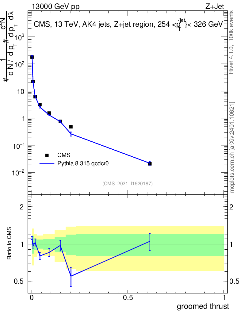 Lines: data, pythia8 8.315 qcdcr0 |