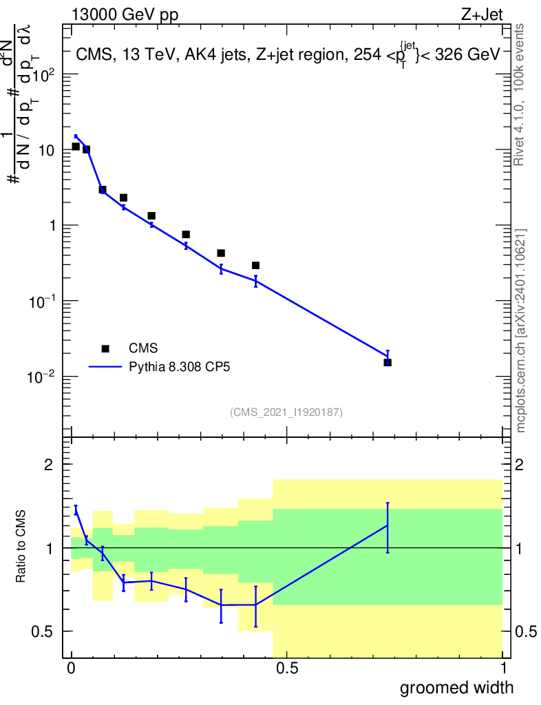 Lines: data, pythia8 8.308 CP5 |