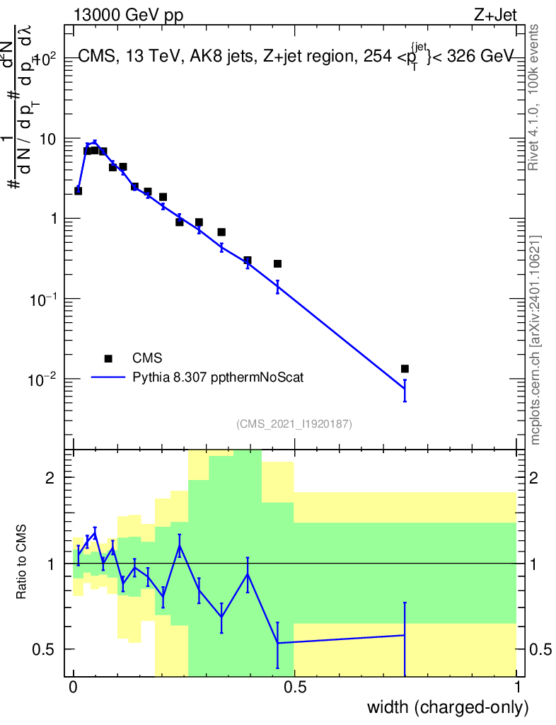 Lines: data, pythia8 8.307 ppthermNoScat |