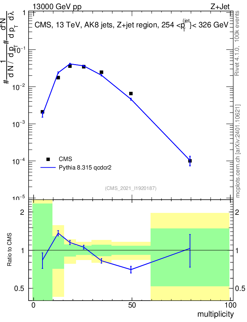 Lines: data, pythia8 8.315 qcdcr2 |