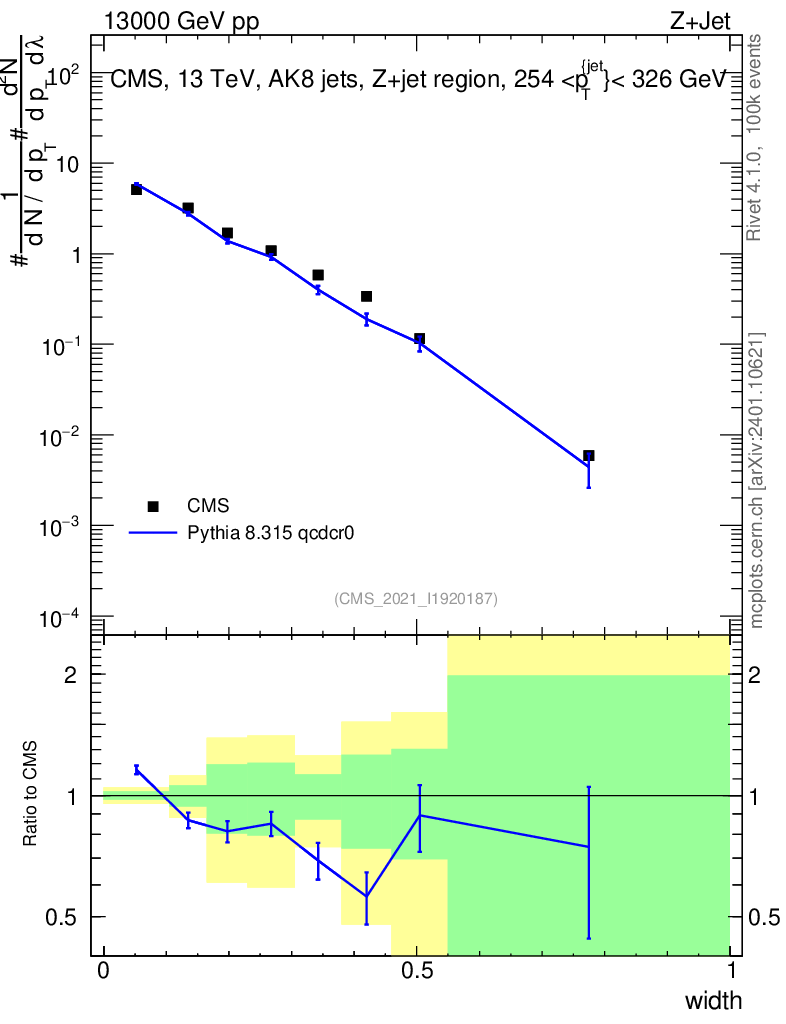 Lines: data, pythia8 8.315 qcdcr0 |