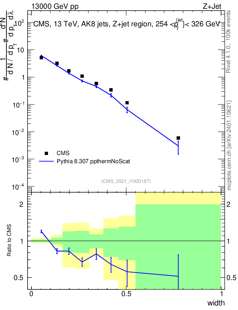 Lines: data, pythia8 8.307 ppthermNoScat |