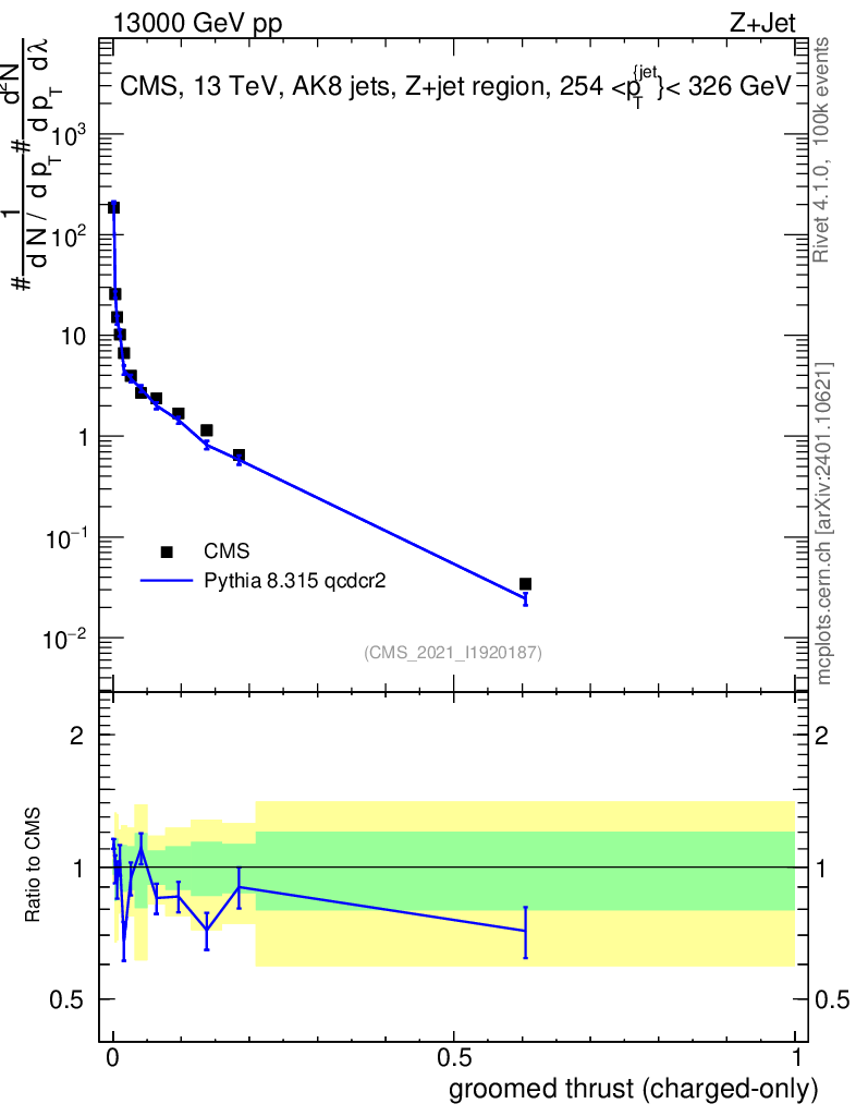Lines: data, pythia8 8.315 qcdcr2 |