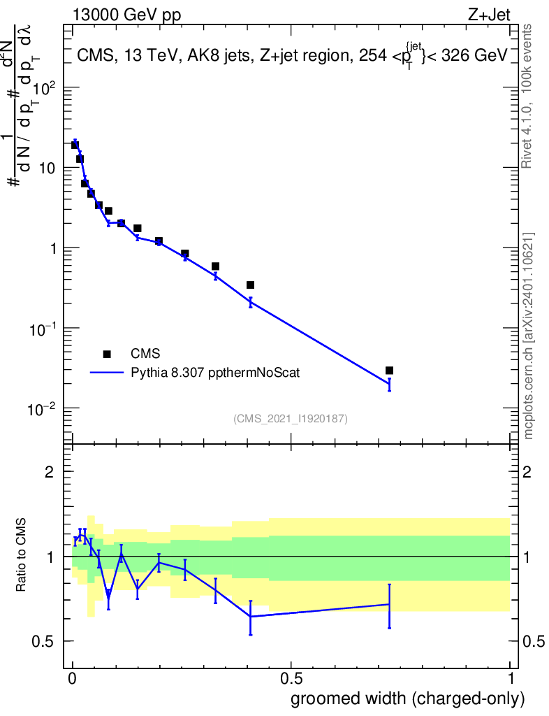 Lines: data, pythia8 8.307 ppthermNoScat |