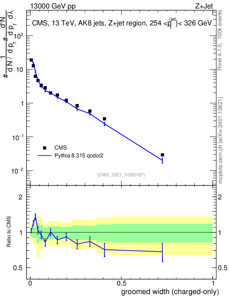 Lines: data, pythia8 8.315 qcdcr2 |