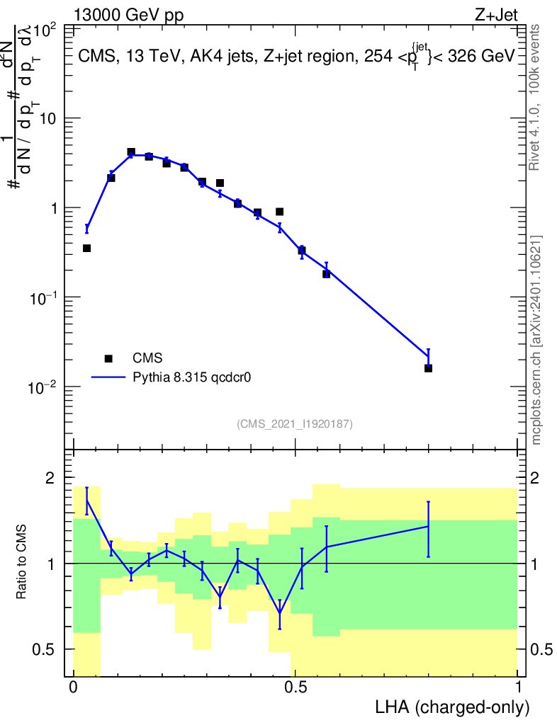 Lines: data, pythia8 8.315 qcdcr0 |