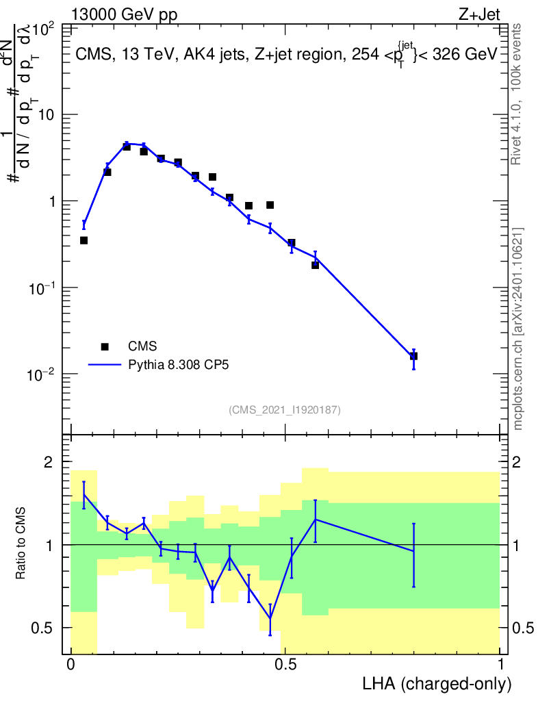 Lines: data, pythia8 8.308 CP5 |