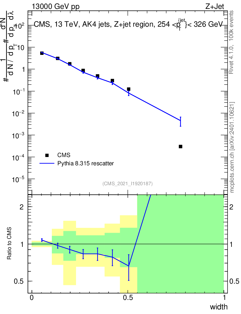 Lines: data, pythia8 8.315 rescatter |