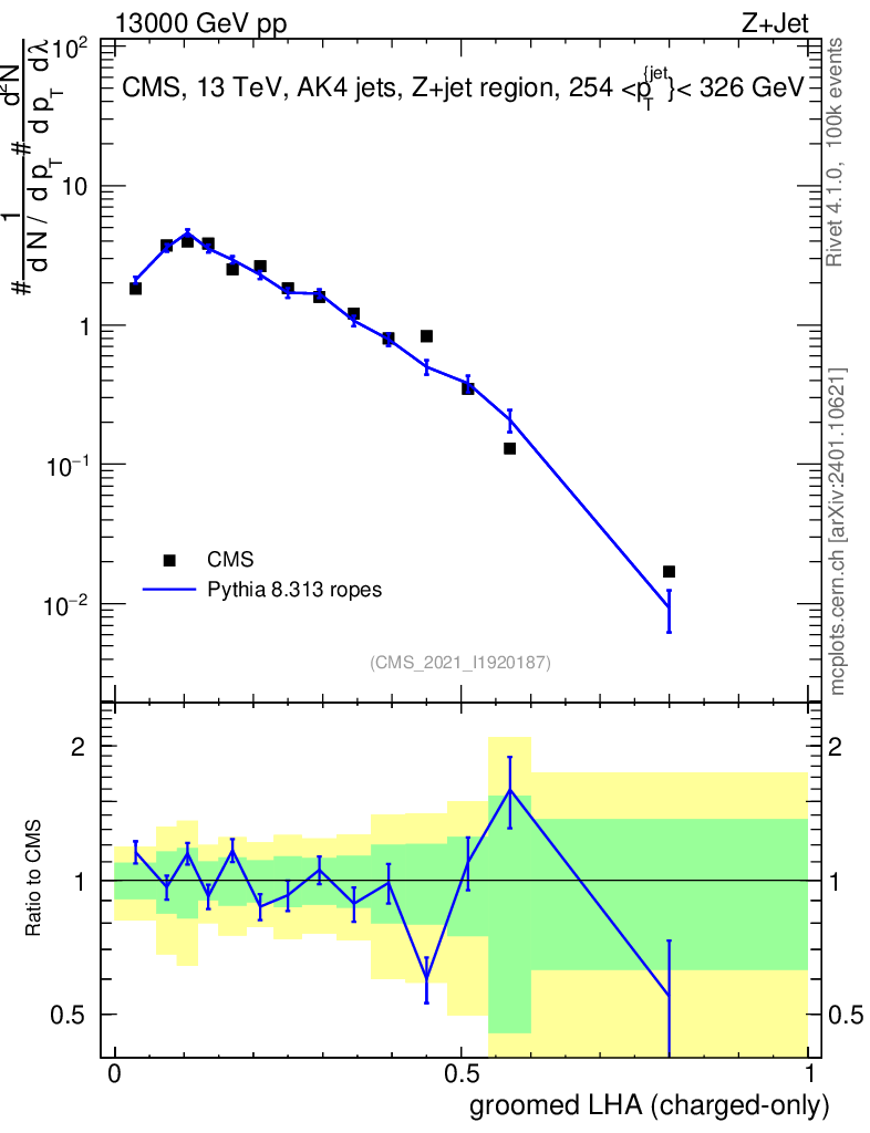 Lines: data, pythia8 8.313 ropes |