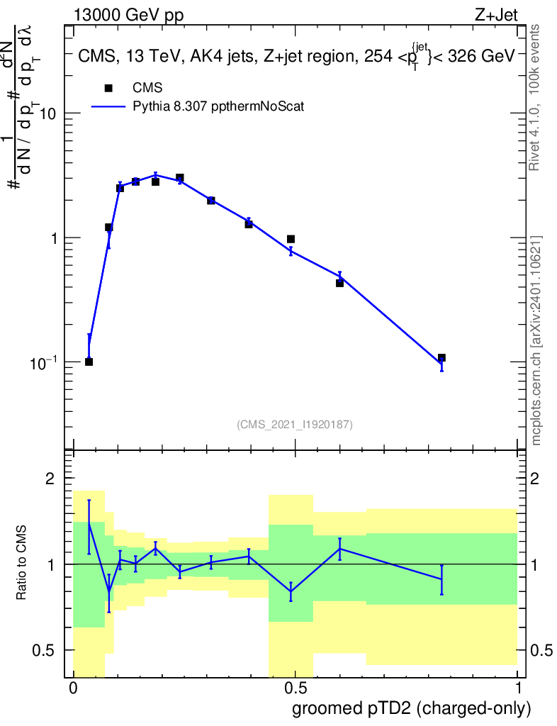 Lines: data, pythia8 8.307 ppthermNoScat |