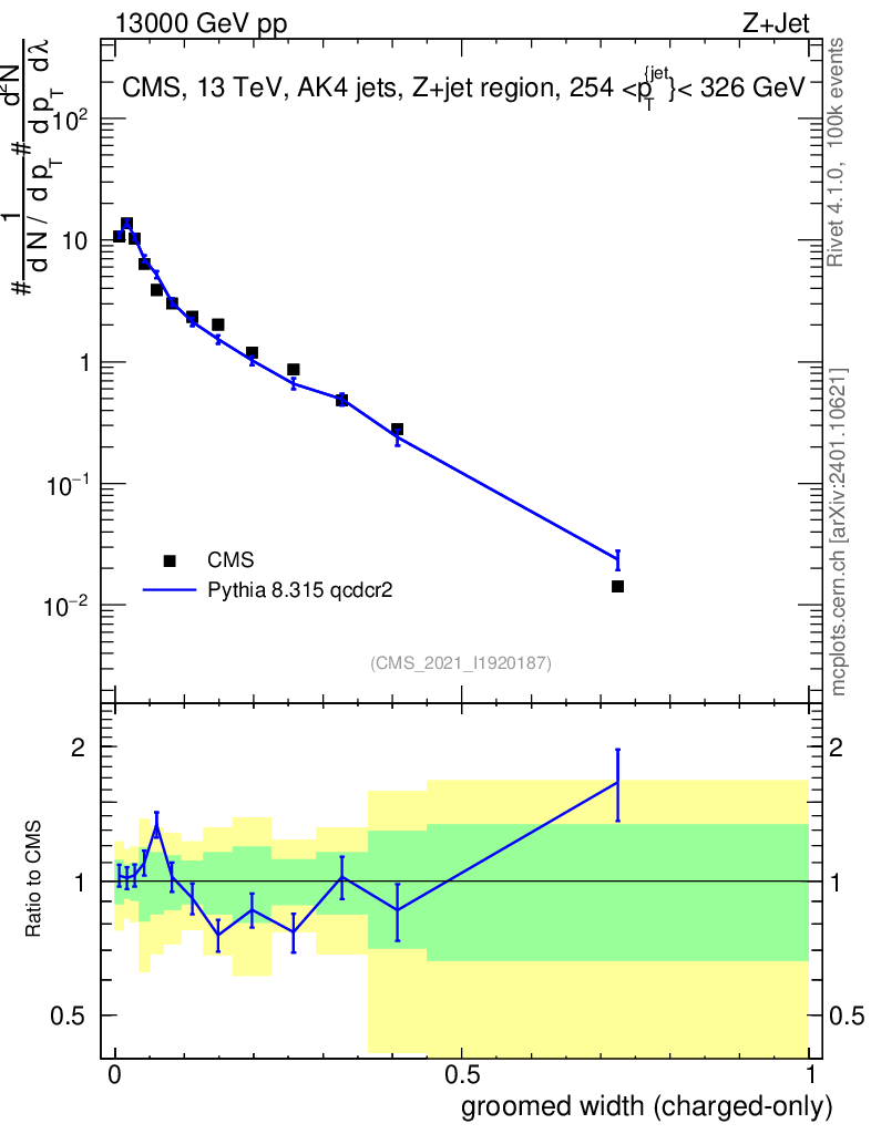 Lines: data, pythia8 8.315 qcdcr2 |