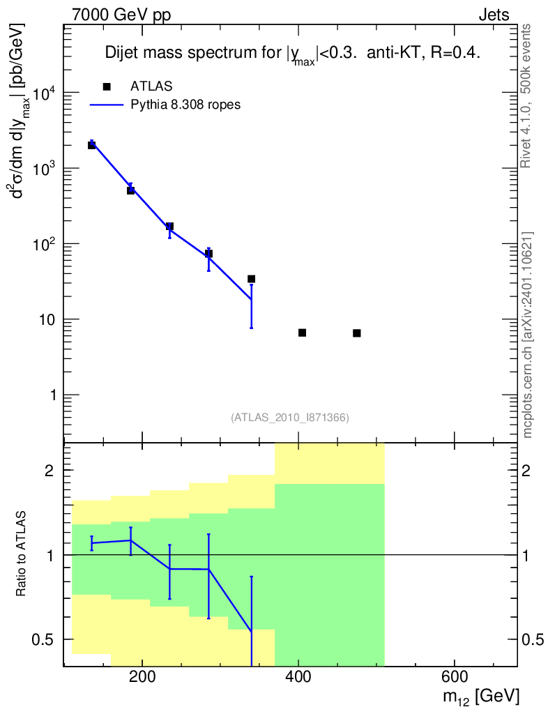 Lines: data, pythia8 8.308 ropes |