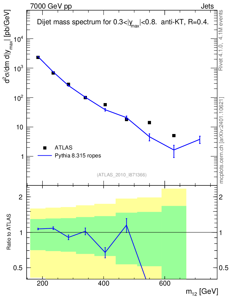 Lines: data, pythia8 8.315 ropes |