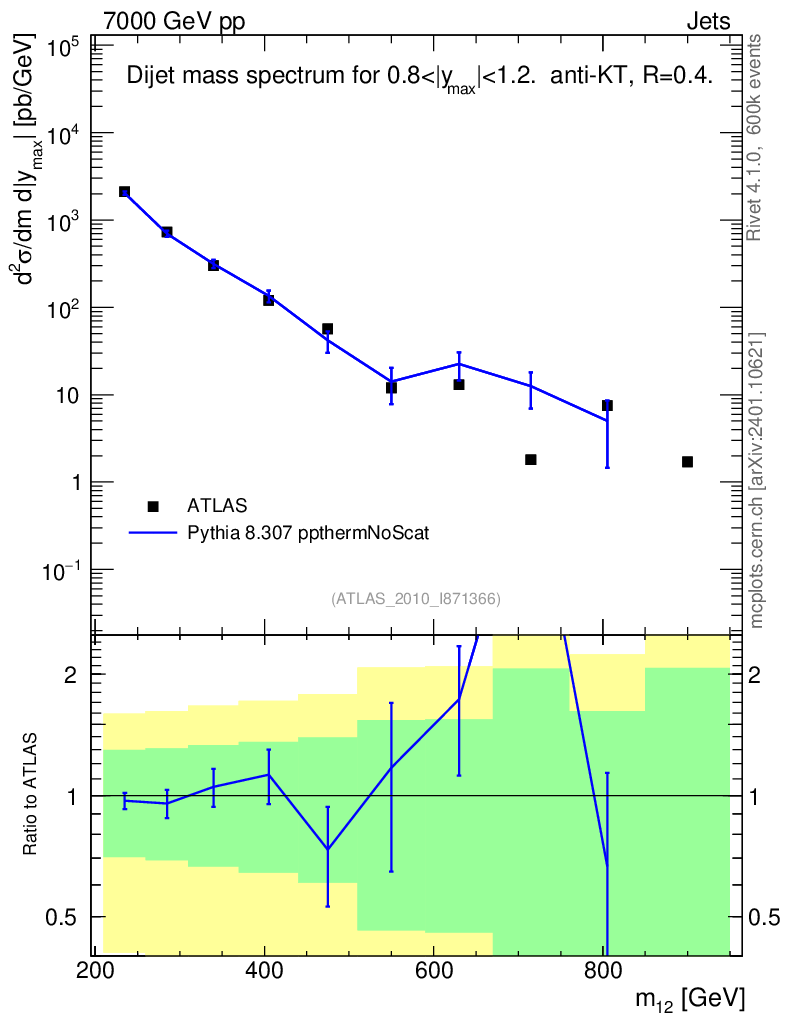 Lines: data, pythia8 8.307 ppthermNoScat |