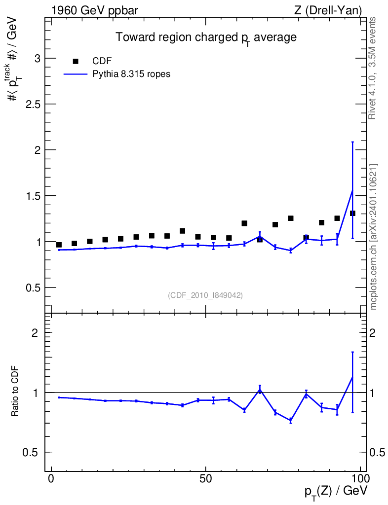 Lines: data, pythia8 8.315 ropes |