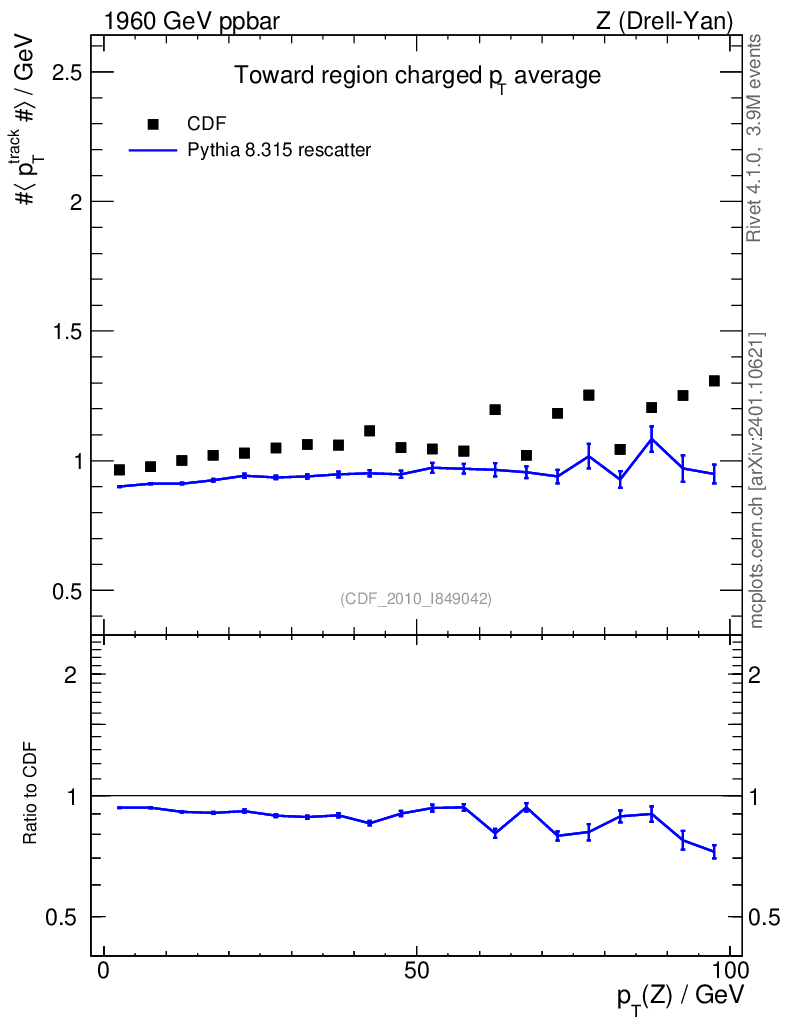 Lines: data, pythia8 8.315 rescatter |