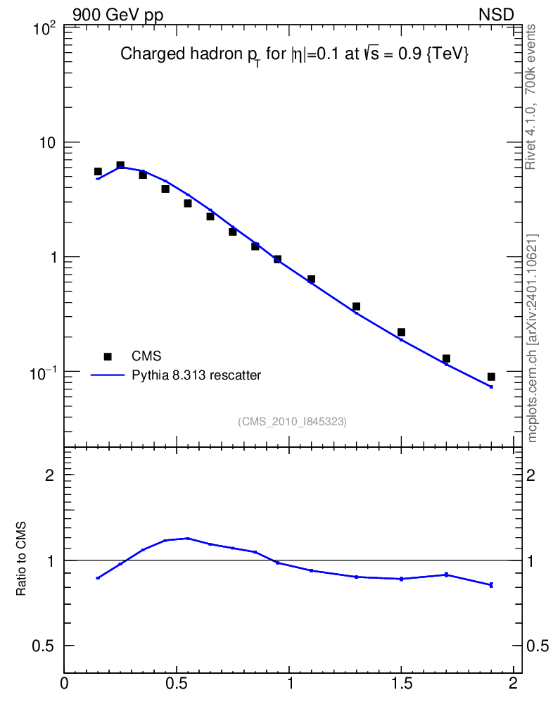 Lines: data, pythia8 8.313 rescatter |