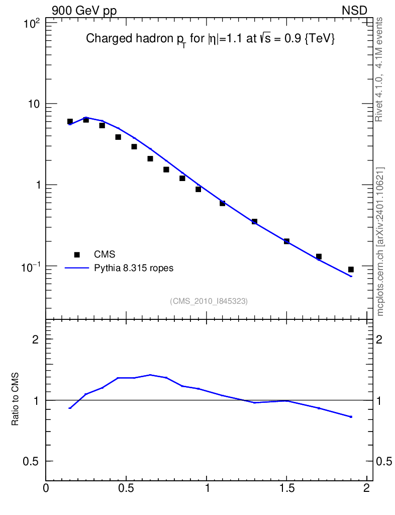 Lines: data, pythia8 8.315 ropes |