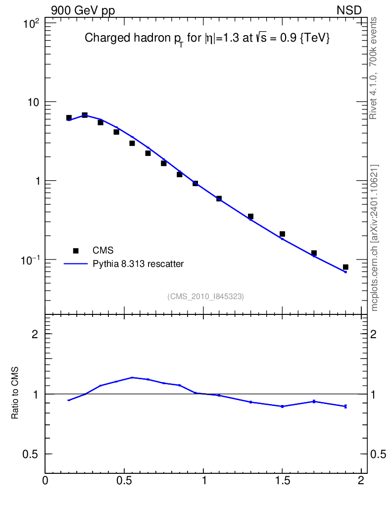Lines: data, pythia8 8.313 rescatter |