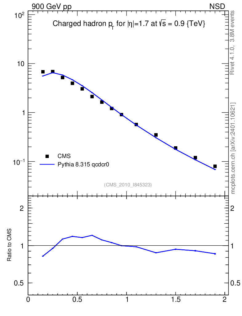 Lines: data, pythia8 8.315 qcdcr0 |