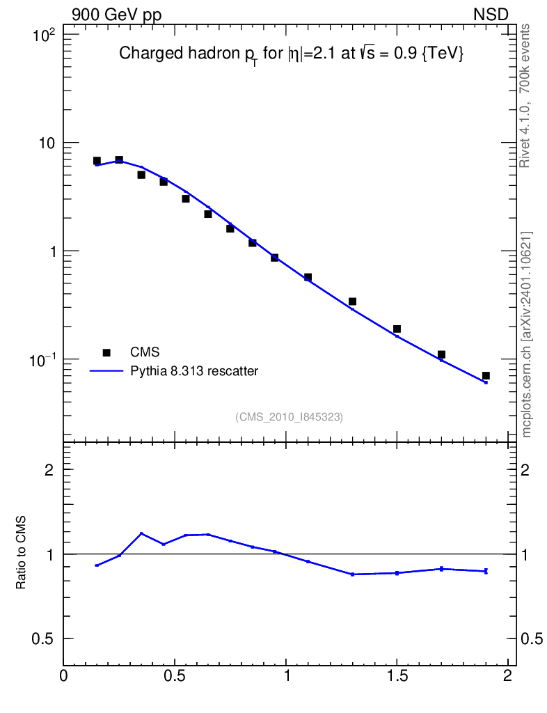 Lines: data, pythia8 8.313 rescatter |