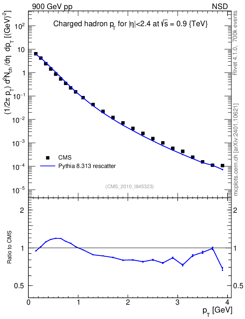 Lines: data, pythia8 8.313 rescatter |